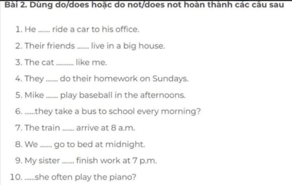 Mấy câu không dùng 'does' hay 'do' mà dùng phủ định (thêm not) là vì 'do' và 'does' ít khi đi theo động từ, phủ định thì đi theo động từ.