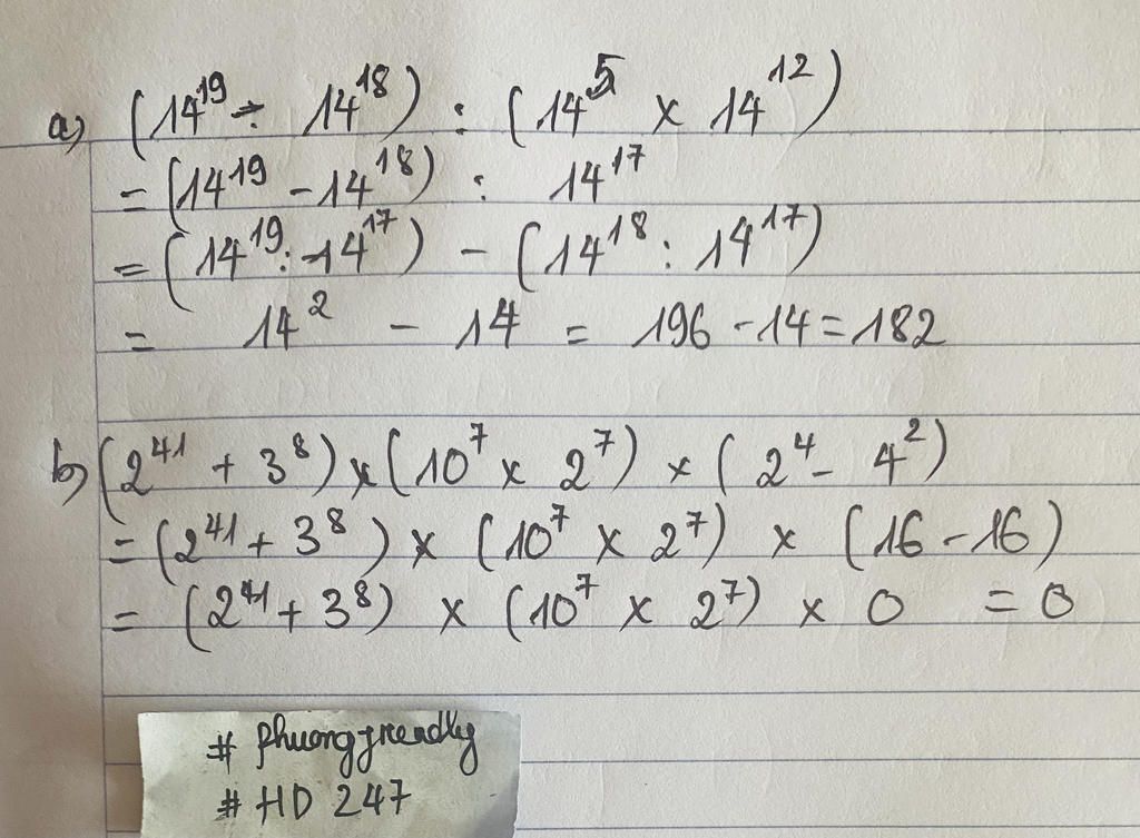 a) ( $14^{19}$ - $14^{18}$ ) : ( $14^{5}$ . $14^{12}$ )