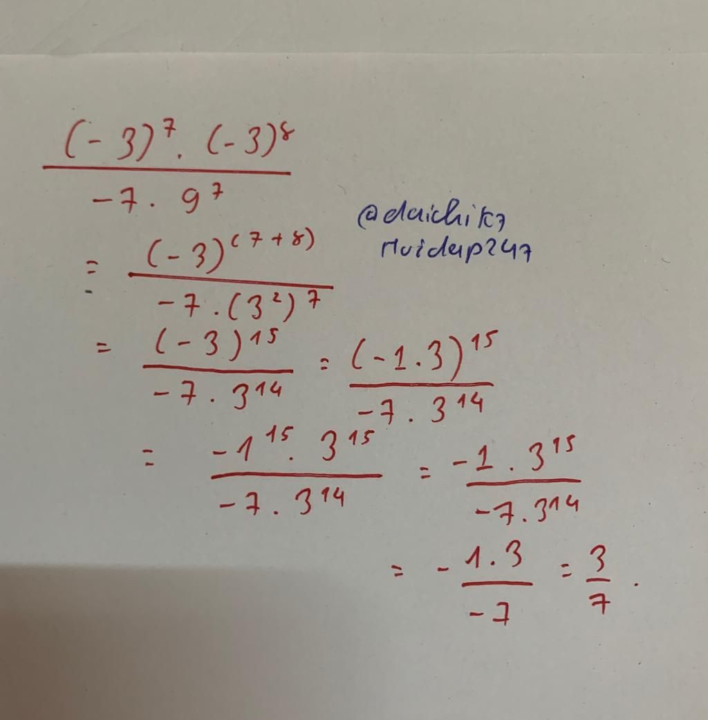` (-3)^7 . (-3)^8/-7 . 9^7 `