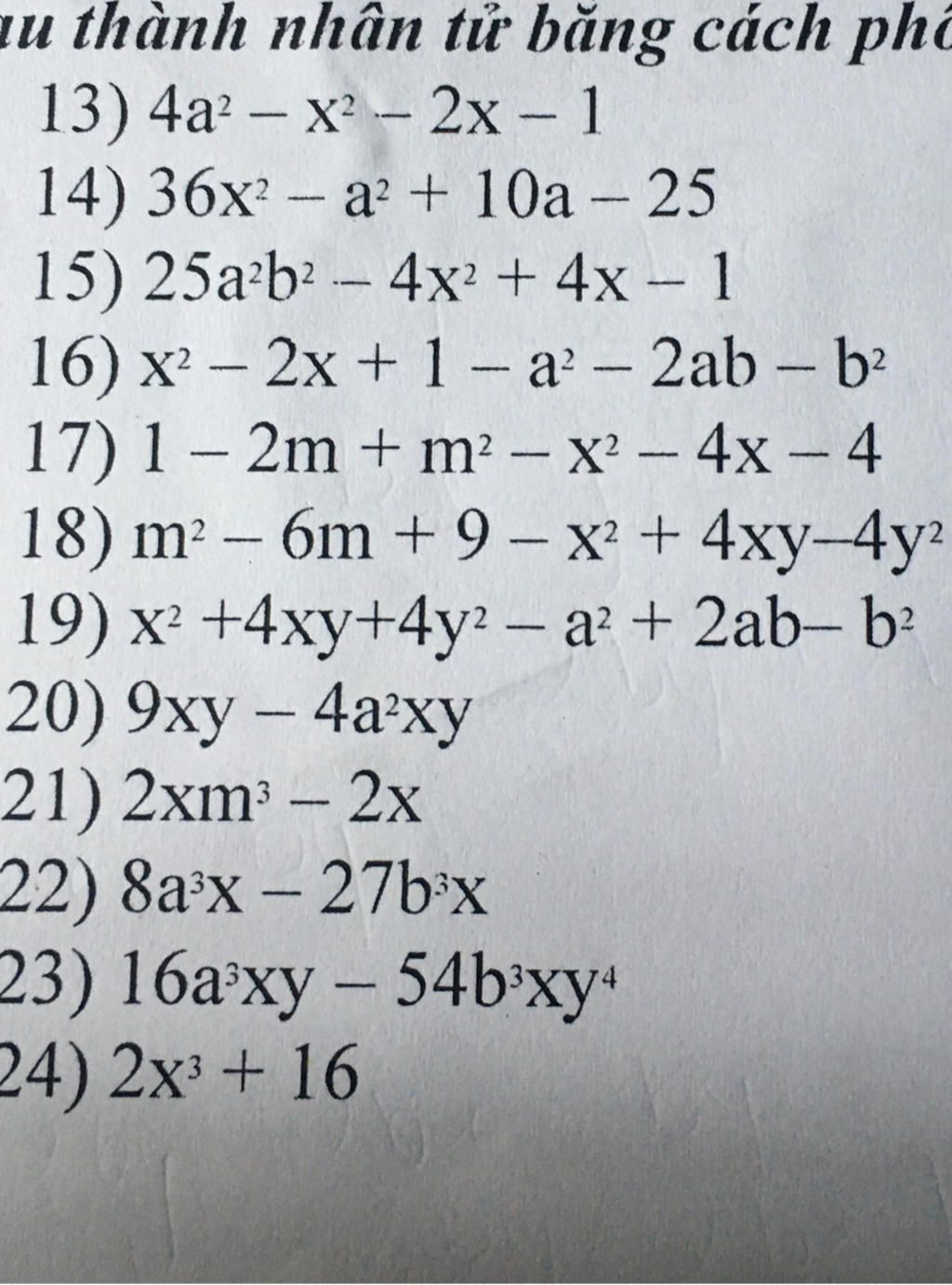 Phân tích các đa thức sau thành nhân tử bằng cách phối hợp nhiều phương pháp giải chi tiết từng bước giúp mình nhé