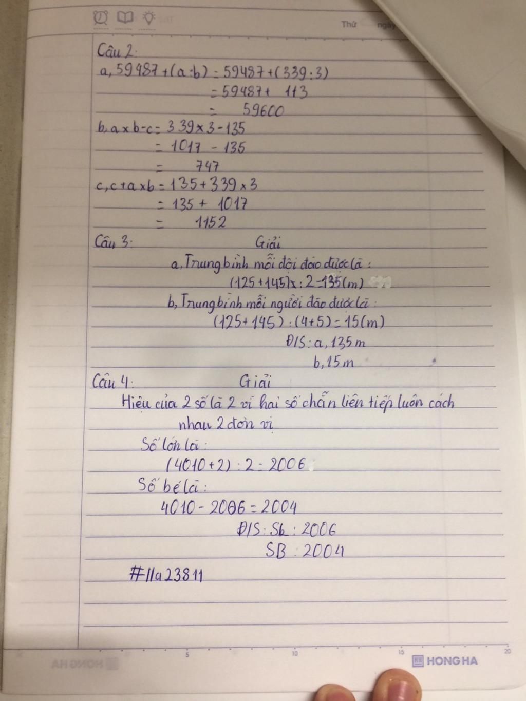 `a)`59 487 + (a : b) = 59 487 + (339 : 3) = 59 600