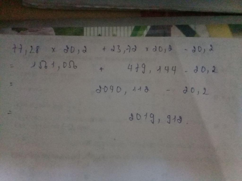 = 77,28 x 20,2 + 23,72 x 20,2 - 20,2 x 1