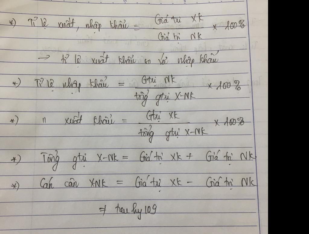 `(\frac{\text{Giá trị xuất khẩu}}{\text{Giá trị nhập khẩu}}) × 100%`