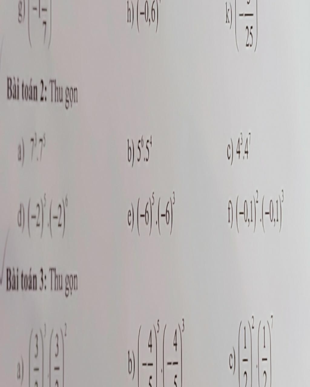 `f) (-0,1)^2. (-0,1)^3 = (-0,1)^(2 +3 ) = (-0,1)^5`