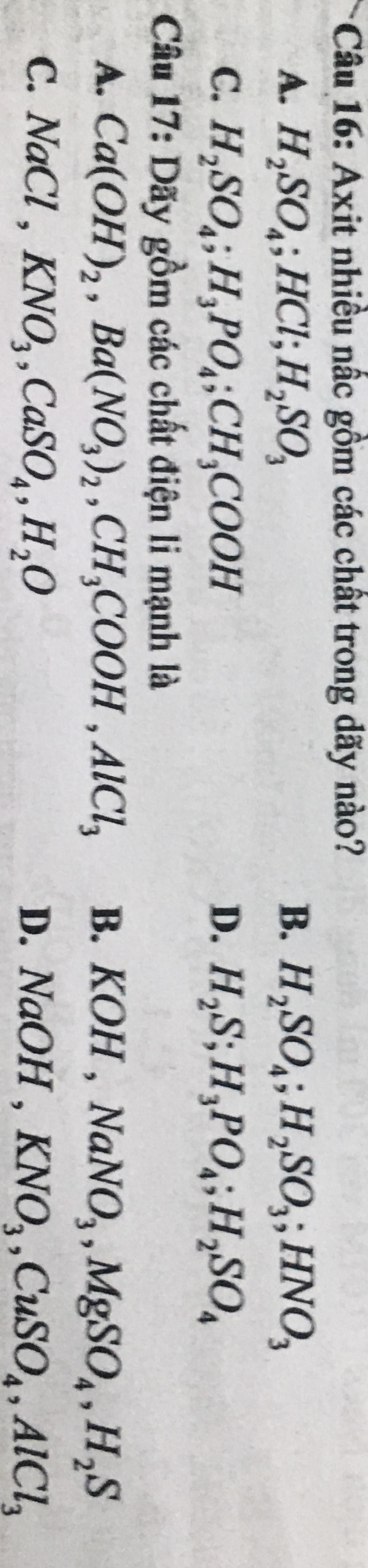 - Loại $A$ vì $CH_3COOH$ là axit yếu → chất điện li yếu.