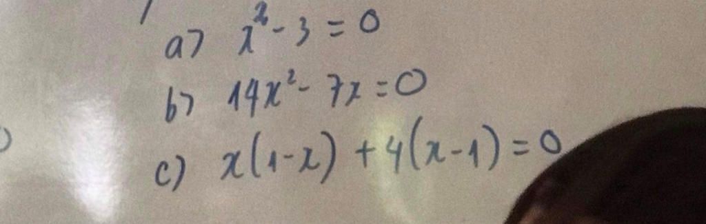 `⇒`\(\left[ \begin{array}{l}x-\sqrt3=0\\x+\sqrt3=0\end{array} \right.\) `⇒`\(\left[ \begin{array}{l}x=\sqrt3\\x=-\sqrt3\end{array} \right.\)