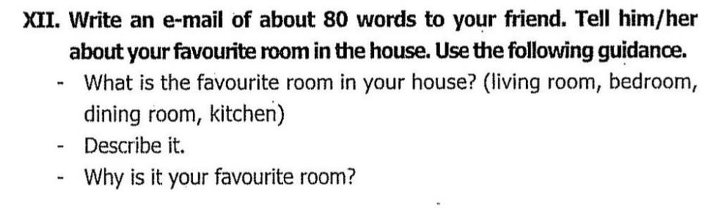 My favorite room is my bedroom. I love it because it is only place in my house where make me feel comfortable. The room is not to large, its area is about 16m2. On the left ride of the room is a table. Opposite the table is my bed. I like jumping in my bed to relax. My room looks warm and cute because it has two windows on the two sides. Its more lovely pictures and some lamps on the walls. I love my room so much.