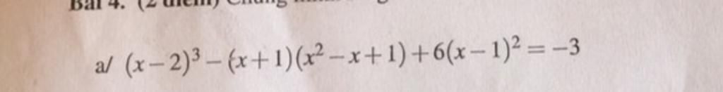 `(x - 2)^3 - (x + 1).(x^2 - x + 1) + 6.(x - 1)^2 = -3`