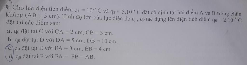 c) Lực điện do q1, q2 tác dụng lên q0 lần lượt là: