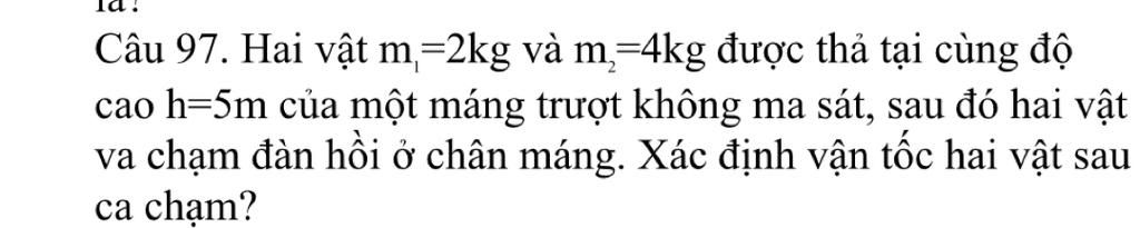 {m_1}gh = \dfrac{1}{2}{m_1}v_1^2 \Rightarrow {v_1} = \sqrt {2gh} = \sqrt {2.10.5} = 10\left( {m/s} \right)\\