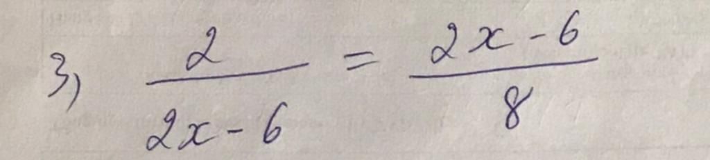 `3) 2/(2x-6) = (2x-6)/8(đk : x ne 3)`