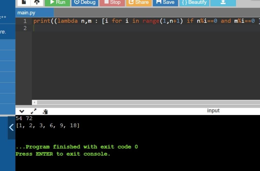 if (n%i == 0) and (m%i == 0):