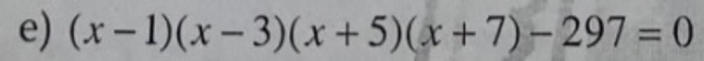 `e) (x - 1)(x - 3)(x + 5)(x + 7) - 297 = 0`