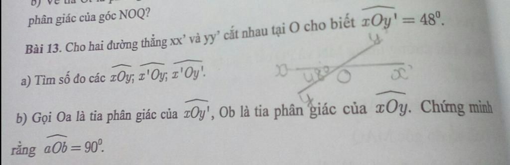 b) Gọi Oa là tia phân giác của zOy', Ob là tia phân giác của xOy. Chứng minh