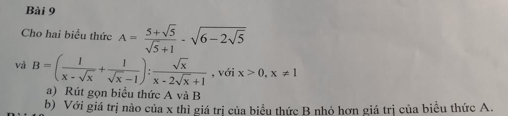 b) Với giá trị nào của x thì giá trị của biểu thức B nhỏ hơn giá trị của biểu thức A.