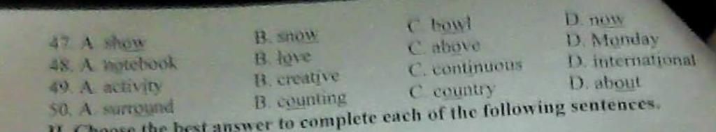 `50.` C ( âm /ʌ/ còn lại âm /aʊ/ )