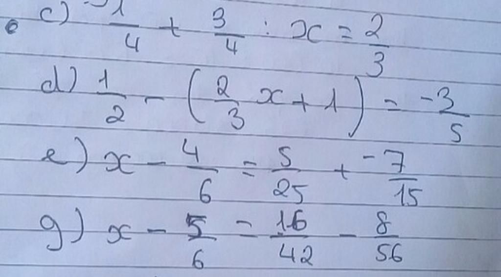 `g) x - 5/6 = 16/42 - 8/56`