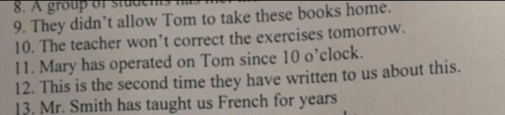 13. We have been taught French by Mr. Smith for years.