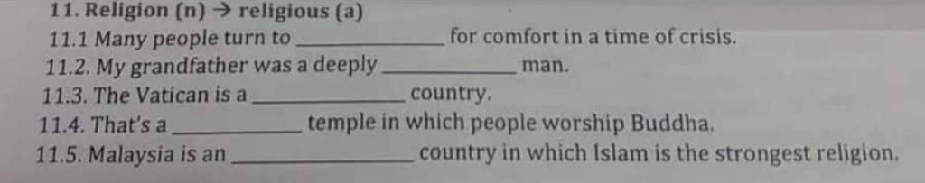 religion (n): tôn giáo, sự tu hành, lòng tín ngưỡng