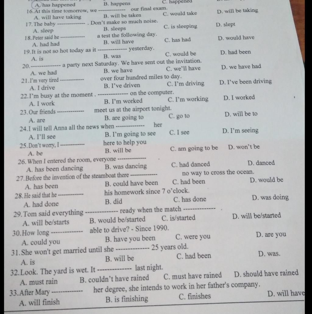 16.At this time tomorrow, we