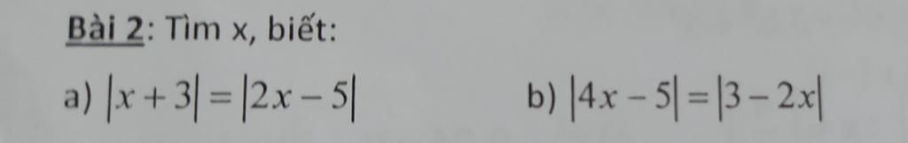 `a) |x+3| = |2x-5|`