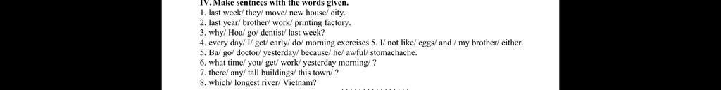 `6.` Ba went to the doctor yesterday because he has awfull about his stomachache