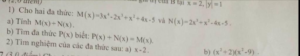 `a)M(x)+N(x)=3x^4-2x^3+x^2+4x-5+2x^3-4x^2-4x-5`