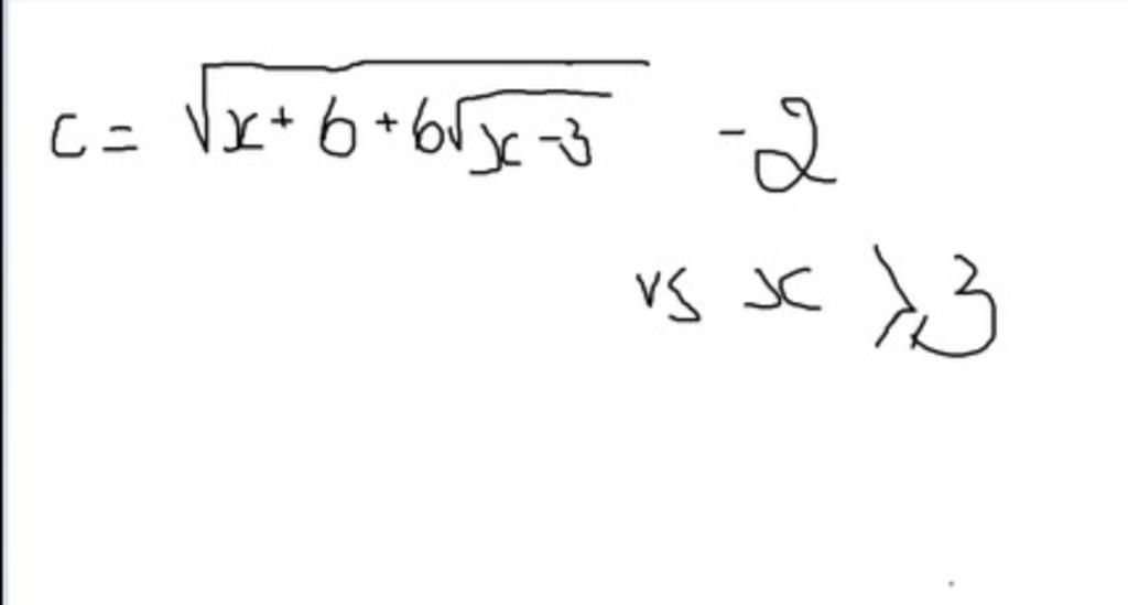`=sqrt{x-3+2.sqrt{x-3}.3+9}-2`