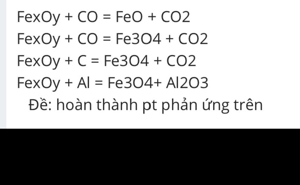 3F{e_x}{O_y} + (3y - 4x)CO \to xF{e_3}{O_4} + (3y - 4x)C{O_2}\\