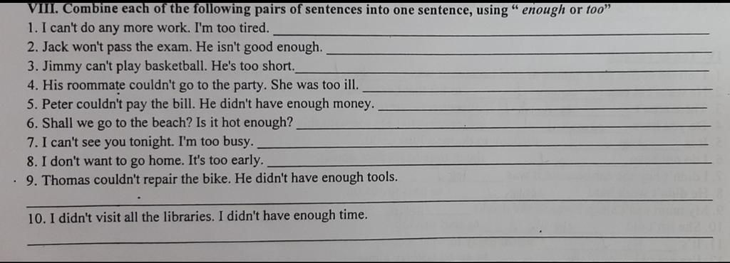 `-` Với danh từ: S + V/tobe + enough + N + (for S.O) + to V-nf...............