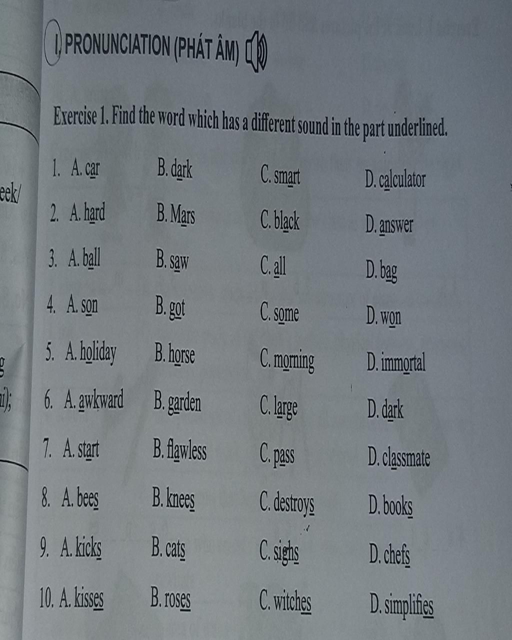 `->` Đọc là /æ/ còn lại là /ɑ:/