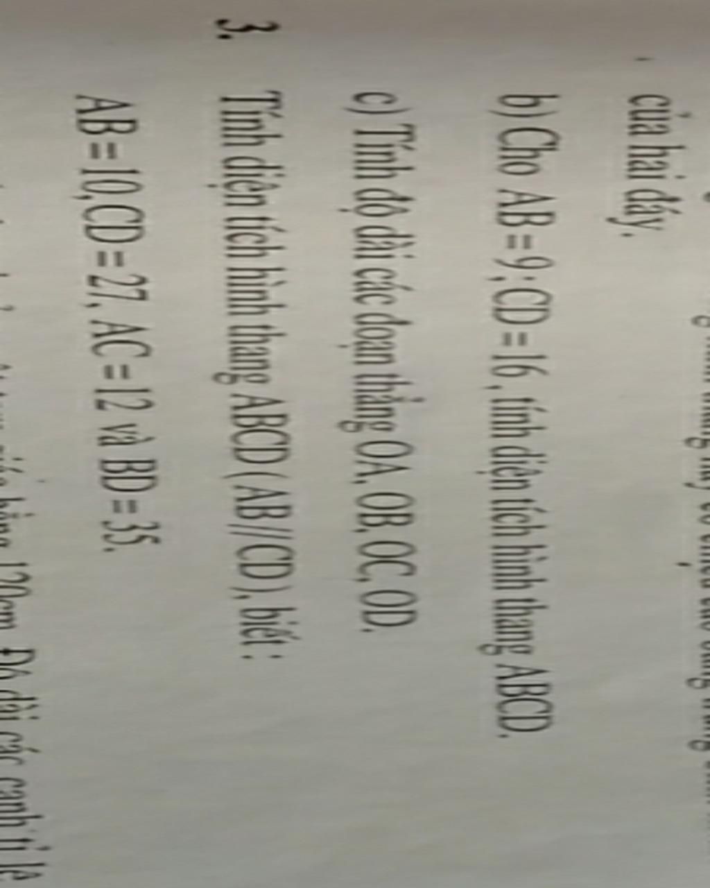 3, Tính diện tích hình thang ABCD (AB/ CD), biết: