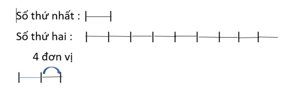 Nếu viết thêm chữ số 4 vào bên phải số thứ nhất thì được số thứ hai, số thứ hai gấp 10 lần số cũ và thêm 4 đơn vị. Vậy tổng hai số là 11 phần và 4 đơn vị