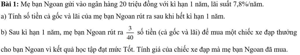 b) Giá tiền chiếc xe đạp mẹ Ngoan mua là :