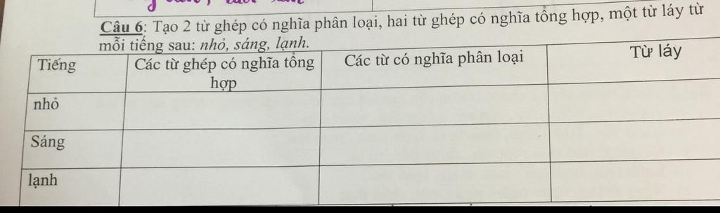 + Từ ghép có nghĩa phân loại: sáng nhẹ, sáng tinh.