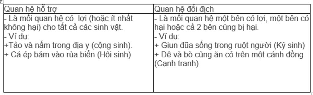 Mối quan hệ khác loài là quan hệ hỗ trợ và đối địch.
