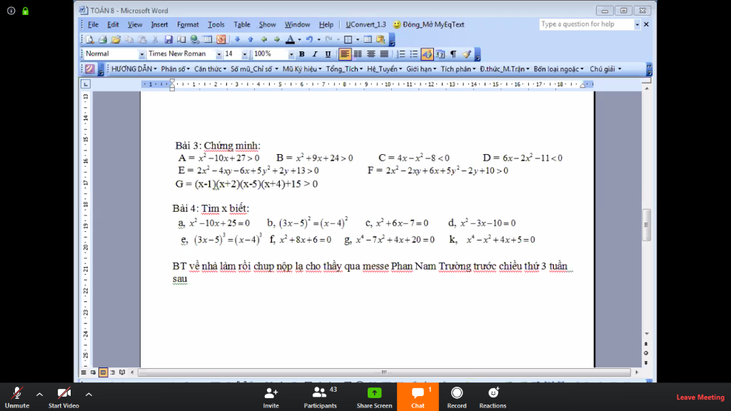 | Eile Edit View Insert Format Iools Table Show Window Help UConvert 1.3 9 Đóng Mở MyEqText