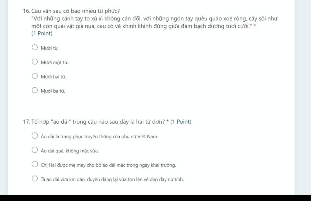 $\Longrightarrow$ Đây là câu có từ áo dài là hai từ đơn