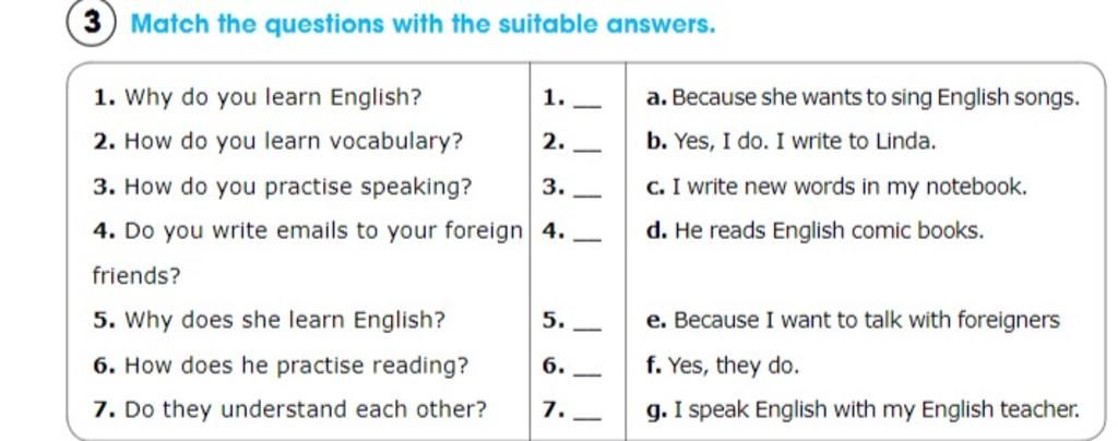 `->` Trả lời: Nói tiếng Anh với giáo viên tiếng Anh