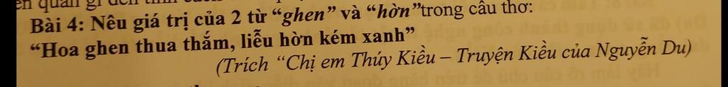 Giá trị của hai từ "ghen" và "hờn" trong câu thơ :