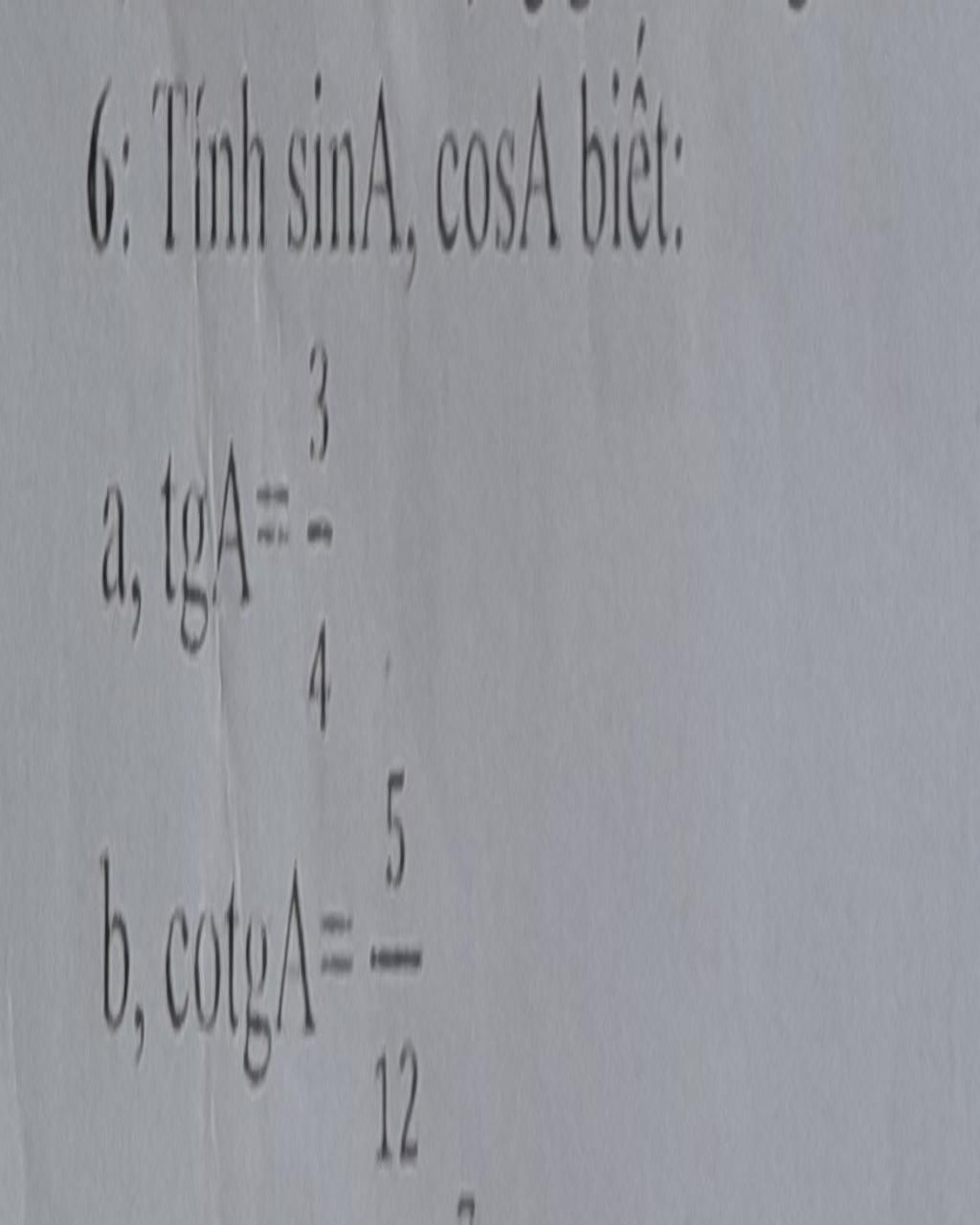 (1)+(2) `=>` Hệ: `{(4sinA-3cosA=0),(sin^2 A+cos^2 A=1):} `