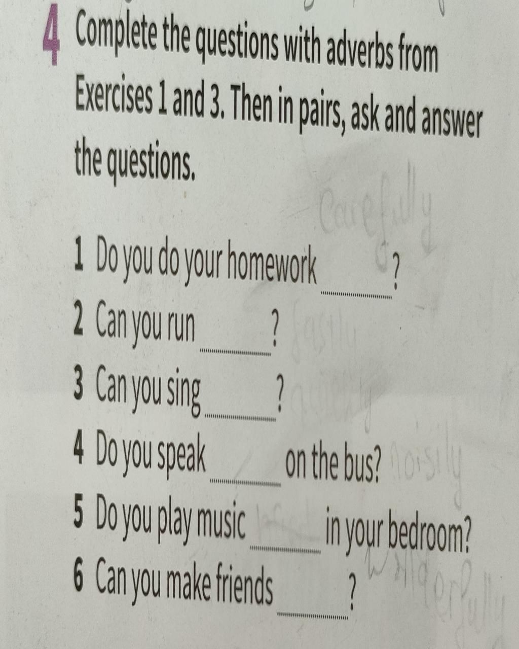 `4`. Do you speak noisily on the bus `?`