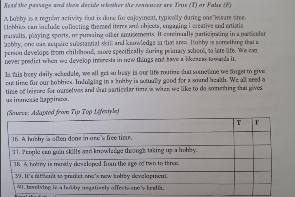 `-` Dẫn chứng: A hobby is a regular activity that is done for enjoyment, typically during one’leisure time.