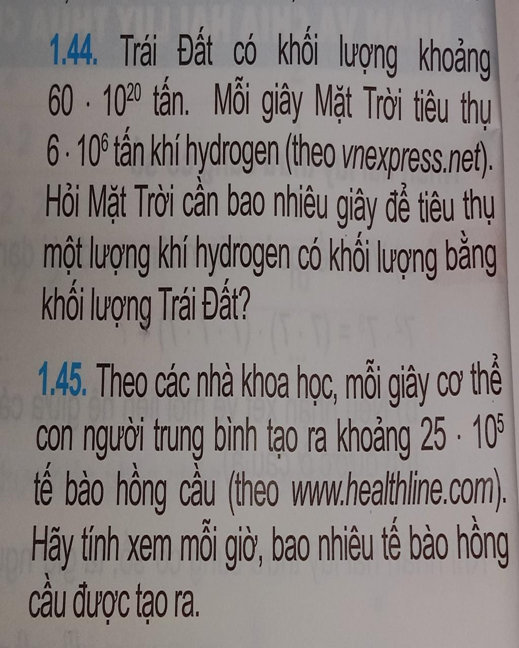 Mặt trời cần số giây để tiêu thụ lượng hồng cầu đó là:
