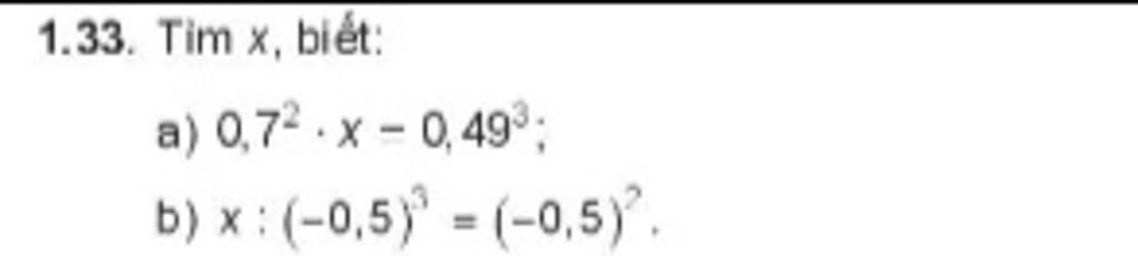 `b) x : (-0,5)^3 = (-0,5)^2`
