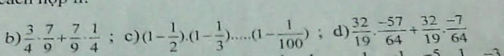 b)$\frac{3}{4}$ . $\frac{7}{9}$ + $\frac{7}{9}$ . $\frac{1}{4}$