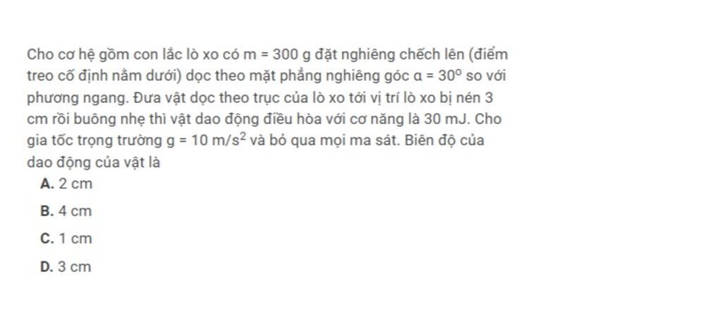 Vì đưa vật tới vị trí lò xo bị nén 3 cm nên biên độ dao động của vật là: