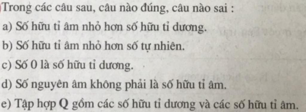 -e) Tập hợp Q không chỉ chứa các số hữu tỉ dương và âm , mà còn chứa số 0 nữa.