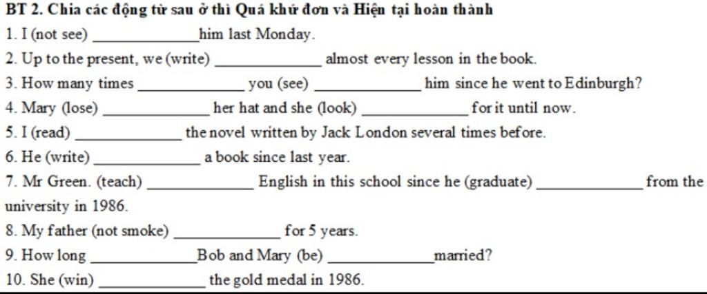 $\text{6. }$has written (DHNB hiện tại hoàn thành: since)