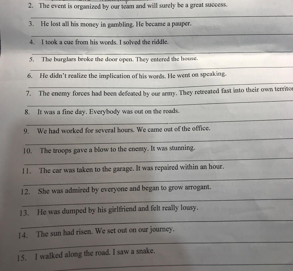 7. Having been defeated by our army, the enemy forces retreated fast into their territory.